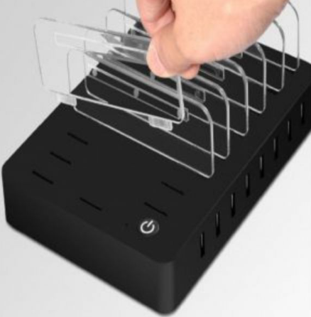 Compact laadstation voor het gelijktijdig laden van maximaal 8 stuks CallHelp 500RX Pagers. Geschikt voor het laden van pagers die voorzien zijn van riemclip of polsband.